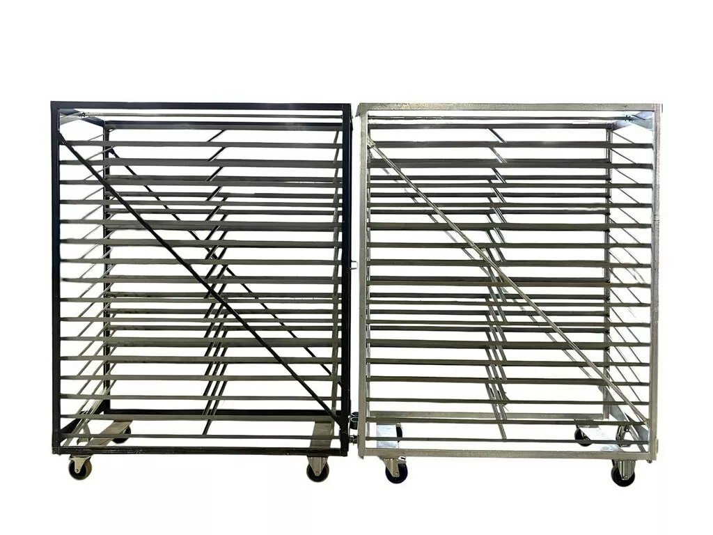 16 уровней, на каждый из которых можно поместить 2 инкубационных лотка по 150 яиц что в сумме дает 32 инкубационных лотка или 4800 яиц. Размеры тележки позволяют ей проходить в стандартный дверной проем.